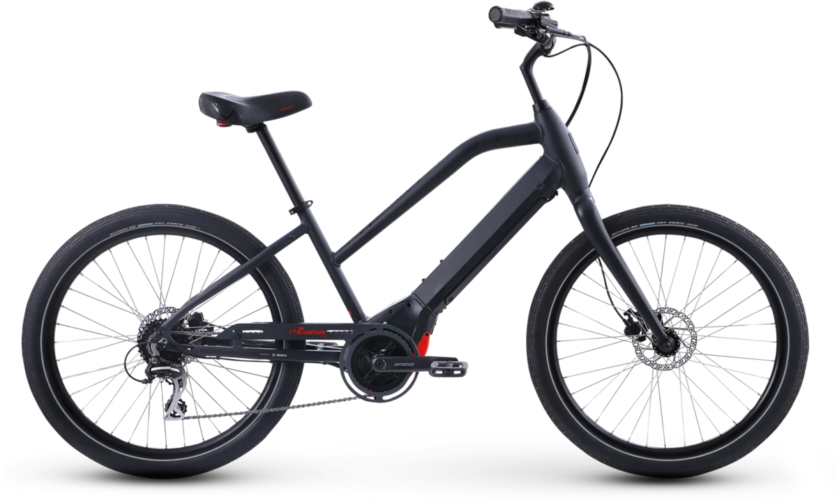 Zoom up (the hills). Zoom down (the road). Zoom all around town or wherever you go on the elevated version of the Zuma, the Zuma Luxe. This stylish step-through frame is designed for nimble handling as well as the ability to quickly put your feet on the ground for stop-and-go riding. The Zuma Luxe is powered by a Bosch Active Line Plus mid-drive motor that can reach top pedal-assist speeds of 20 mph. Paired with a 400Wh integrated battery, it provides the power and range to venture 20–53 miles on a single charge. The Tektro hydraulic disc brakes provide powerful and consistent braking, regardless of the conditions, and perform reliably day-in and day-out. The Zuma Luxe also features a wide-range cassette with a 12-32T range and a 38T chainring, which means your gearing is super sufficient to assist you in going quickly uphill, downhill, and anywhere across town.