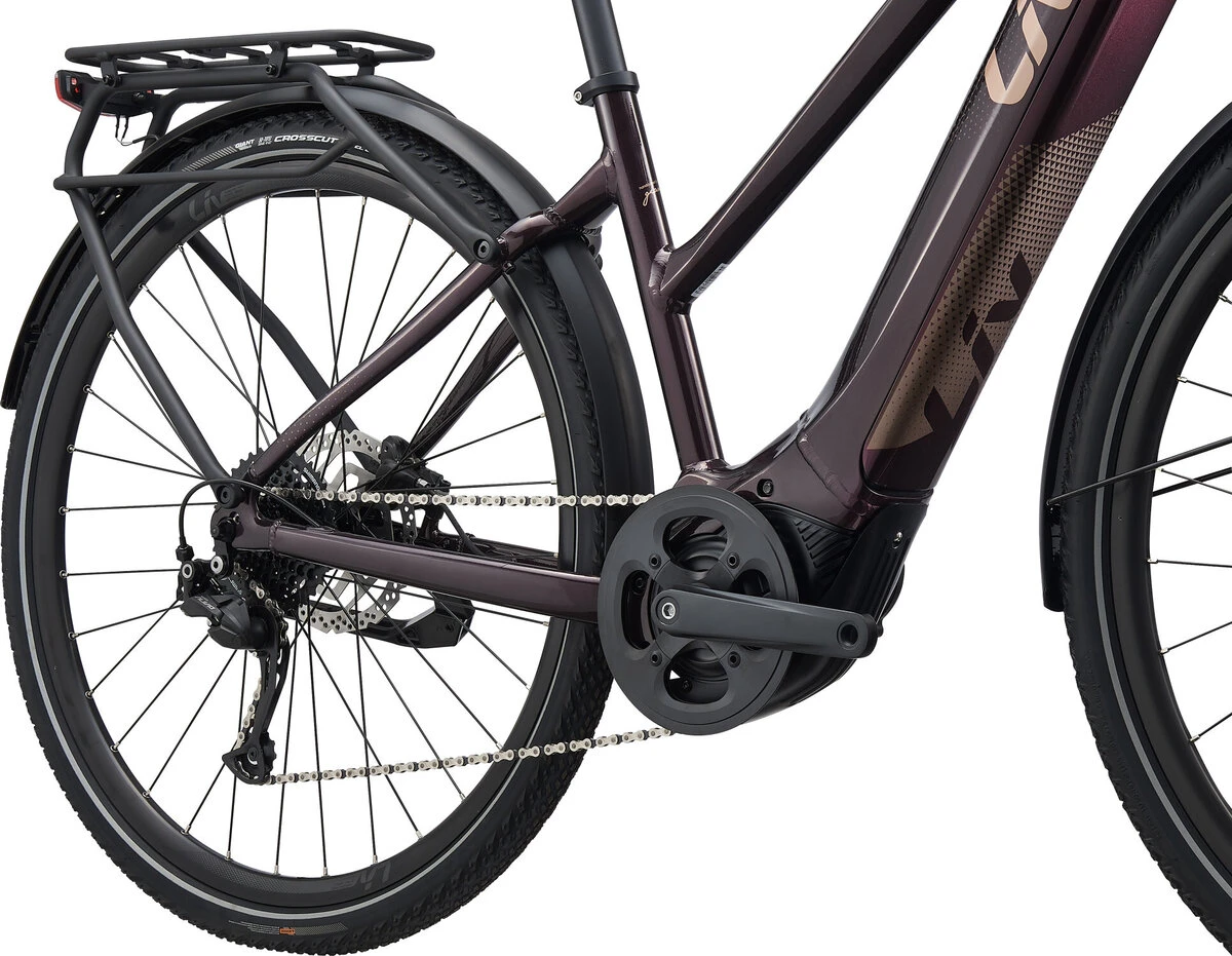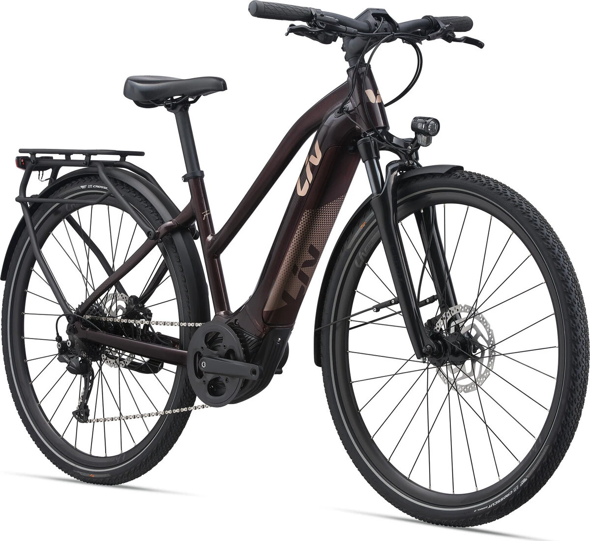 The reliable and easy-to-access EnergyPak Smart is beautifully integrated into a lightweight and durable ALUXX SL-Grade aluminum frame, designed and tuned for women using Liv’s 3F Design Philosophy for a bike that zips along on longer adventures. Integrated dropouts make adding accessories easy, and paired with fenders, rack, and an integrated light on the head tube, Amiti E+ is ready for comfortable commuting or awe-inspiring point-to-point treks.