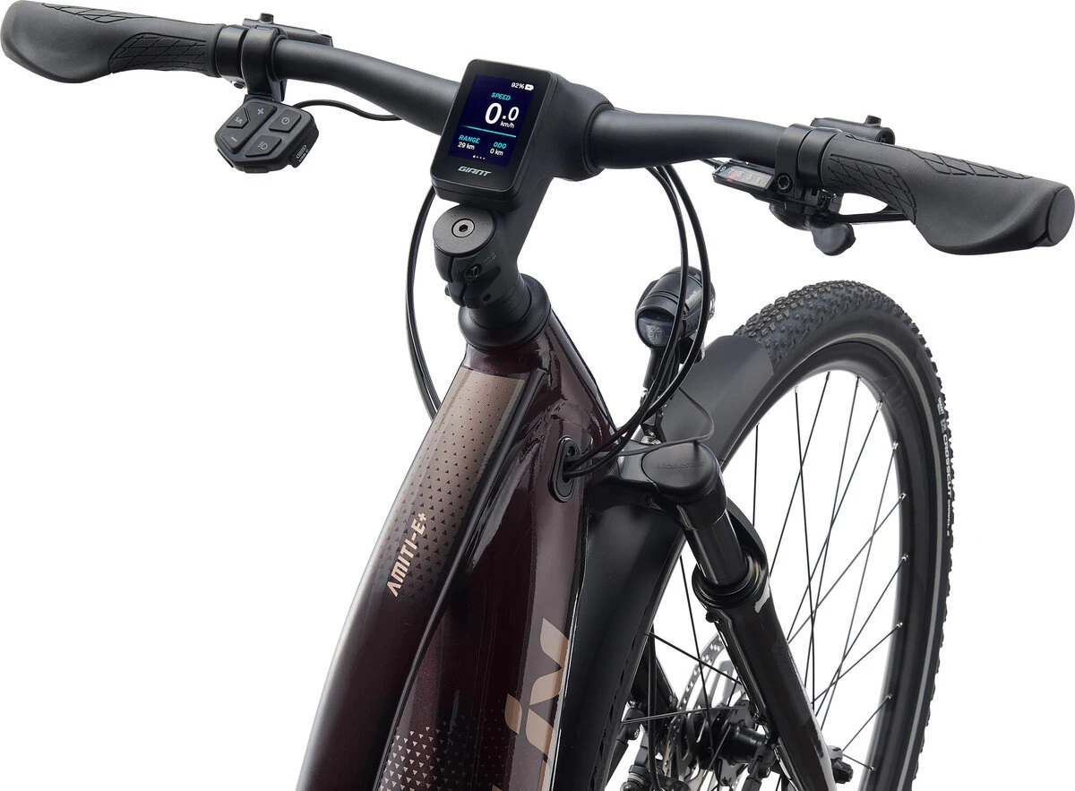 Smart Assist Technology smooths out bumps, and the ergonomic RideControl Ergo series handlebar controls make adjusting pedal assist simple. A suspension fork, all-terrain capable tires, and sloping top tube with low standover height specifically developed for women turns Amiti E+ into a comfortable adventure ride.