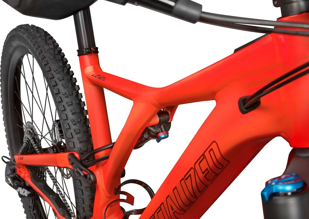 – The Turbo Levo SL looks like a Stumpjumper and, out on the trail, feels like one too. That’s no mistake. We aimed to build a Stumpjumper with a bit more boost to it and that’s exactly what you get—similar Sidearm chassis with great, balanced stiffness and 150mm of smooth, custom-tuned suspension. The Turbo Levo SL Comp’s chassis is constructed entirely from our light-yet-strong M5 premium aluminum.