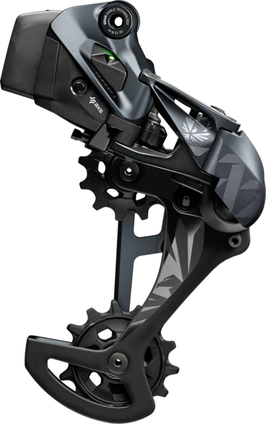 More than a mechanical derailleur with a battery and a motor bolted on, the Eagle AXS derailleur is the heart of the whole AXS system. It features a shorter cage for 10mm more ground clearance, with more chain wrap on the cassette to sit slightly further forward, and further inboard from mechanical Eagle. Instantaneous shifts from a single touch even while under World Cup-winning chain loads recorded in the heat of racing and affirmed in the test lab. Tested to IP69K water and dust proofing standard so whatever race day brings, you’re ready.